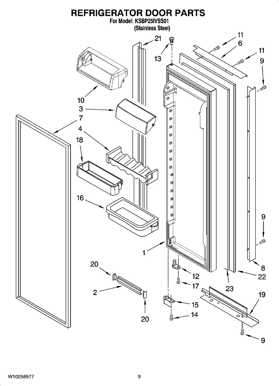 Number on scheme #1 (Whirlpool KSBP25INSS02): 22