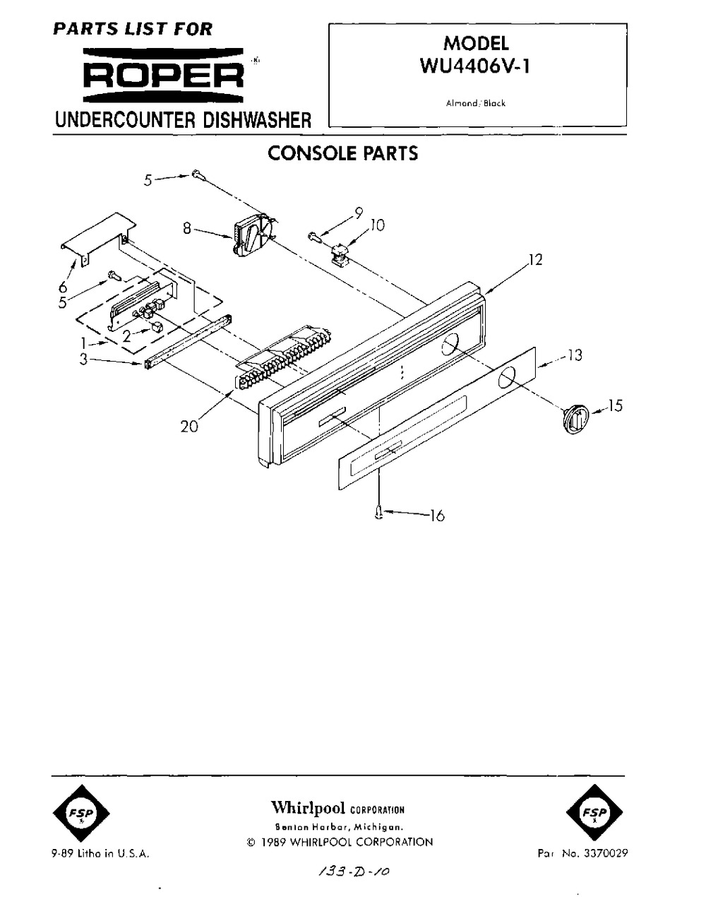 Number on scheme #2 (Whirlpool WU4406V1): 2