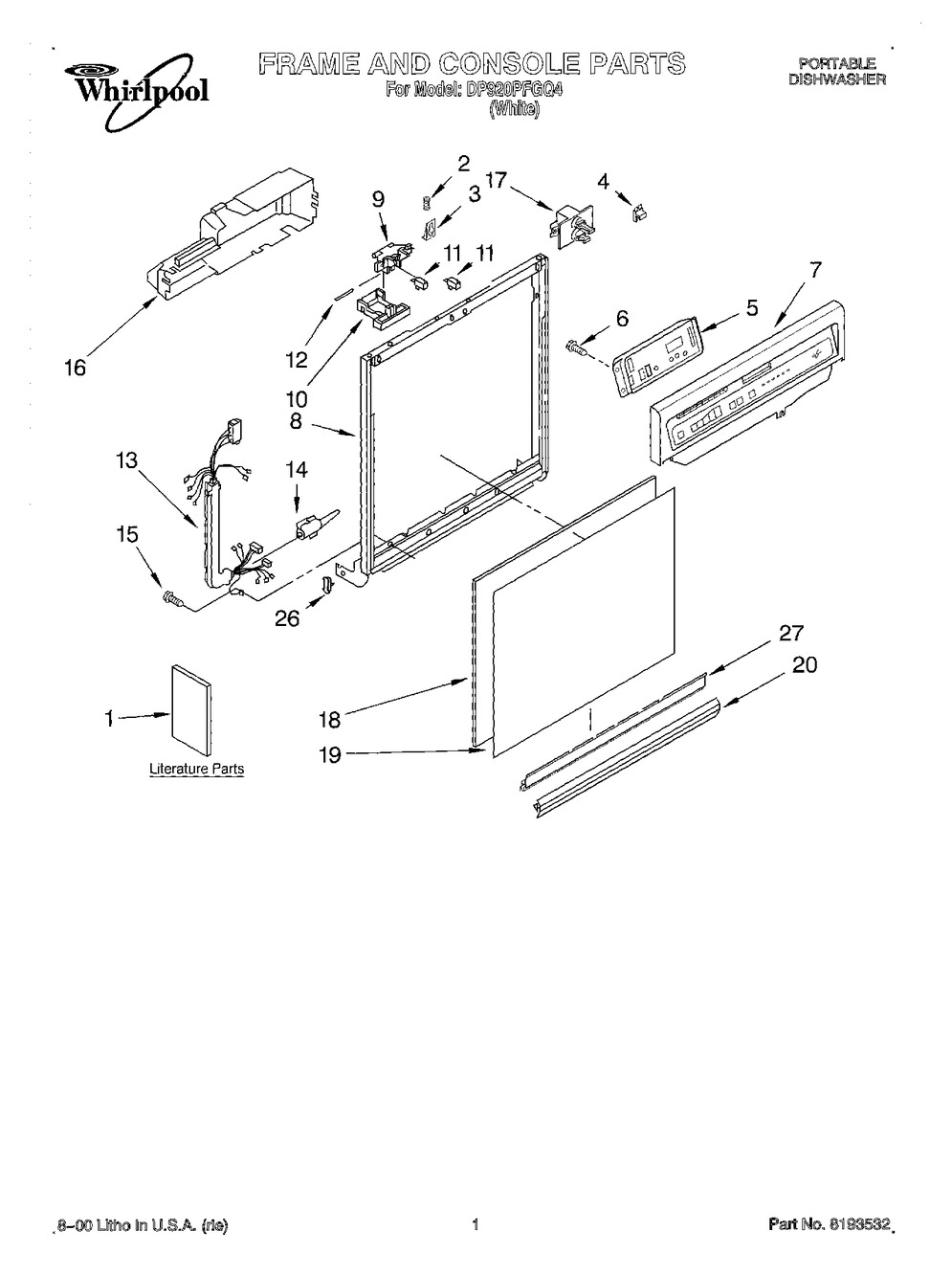 Number on scheme #1 (Whirlpool DP920PFGQ2): 13