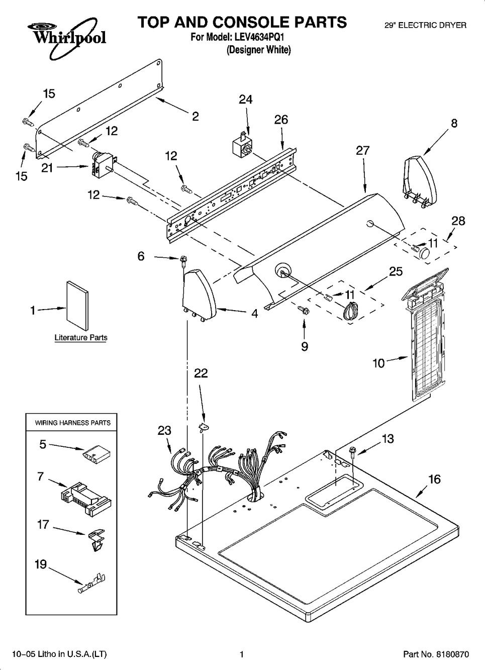 Number on scheme #2 (Whirlpool LEV4634PQ1): 1