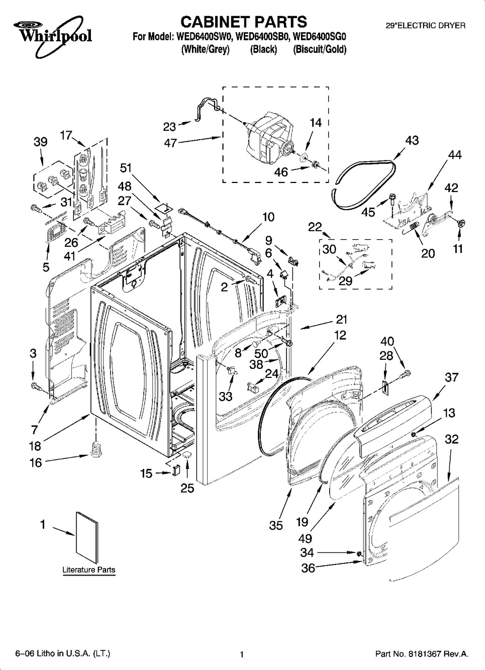 | Applicable to | Whirlpool WED6400SW0, Whirlpool WED6400SG1, Whirlpool WED6400SG0, Whirlpool WED6400SW1, Whirlpool WED6400SB0, Whirlpool WED6200SW1, Whirlpool WED6200SW0, Whirlpool WED6400SB1 |