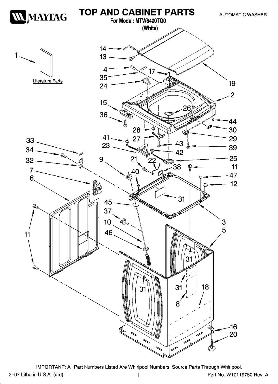 | Applicable to | Whirlpool MTW6600TB0, Whirlpool MTW6400TQ0, Whirlpool MTW6600TQ0, Maytag MTW6600TQ0, Maytag MTW6600TB0, Maytag MTW6400TQ0 |