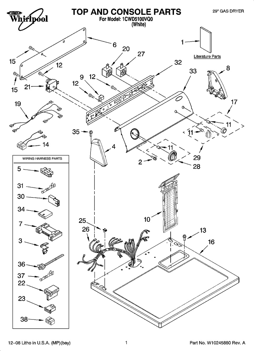 Whirlpool 1CWGD5100VQ1, Whirlpool 1CWED5100VQ1, Whirlpool 1CWED5100VQ0, Whirlpool 1CWD5100VQ0, Whirlpool WGD5100VQ1, Whirlpool WGD5100VQ0, Whirlpool WED5100VQ1, Whirlpool WED5100VQ0