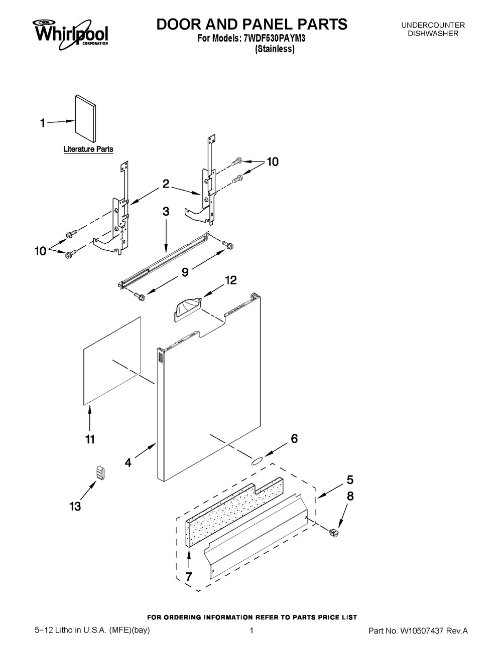 Number on scheme #1 (Whirlpool 7WDF530PAYM1): 1