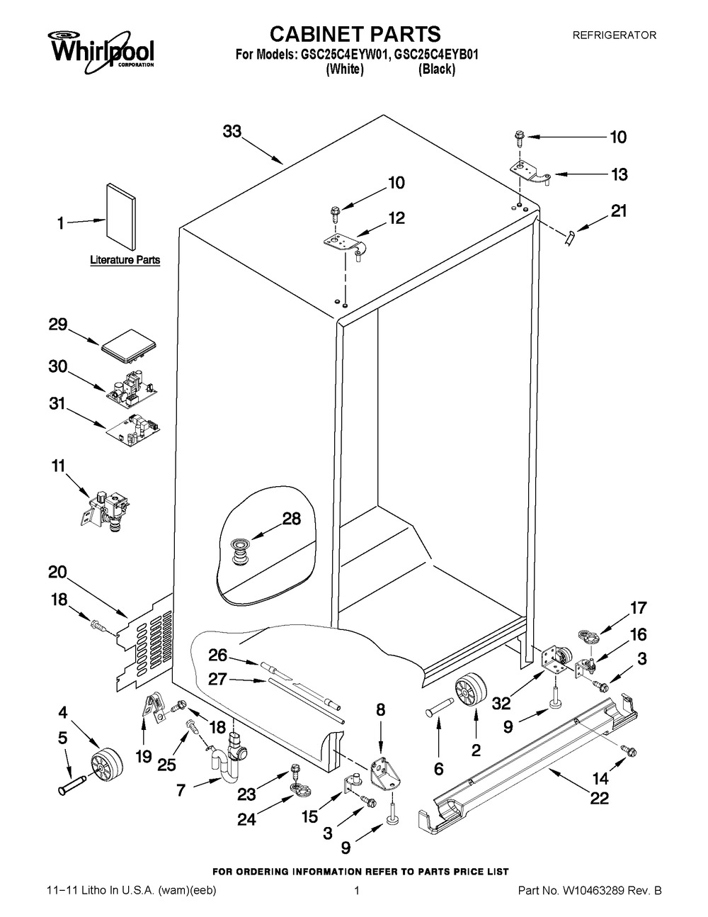 | Applicable to | Whirlpool GSC25C5EYW01, Whirlpool GSC25C4EYY02, Whirlpool GSC25C5EYB01, Whirlpool GSC25C4EYB01, Whirlpool GSC25C5EYY02, Whirlpool GSC25C4EYW01 |